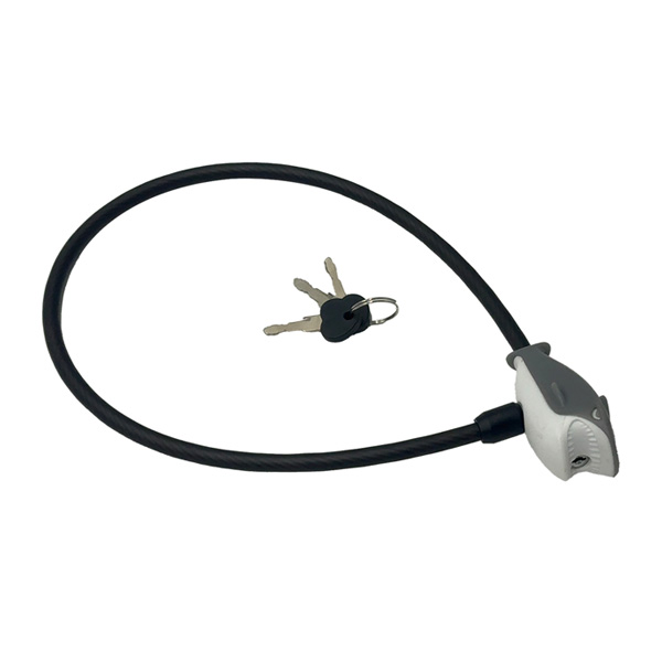 カギ差し込み部がかわいい鮫の形状になっているワイヤー錠。